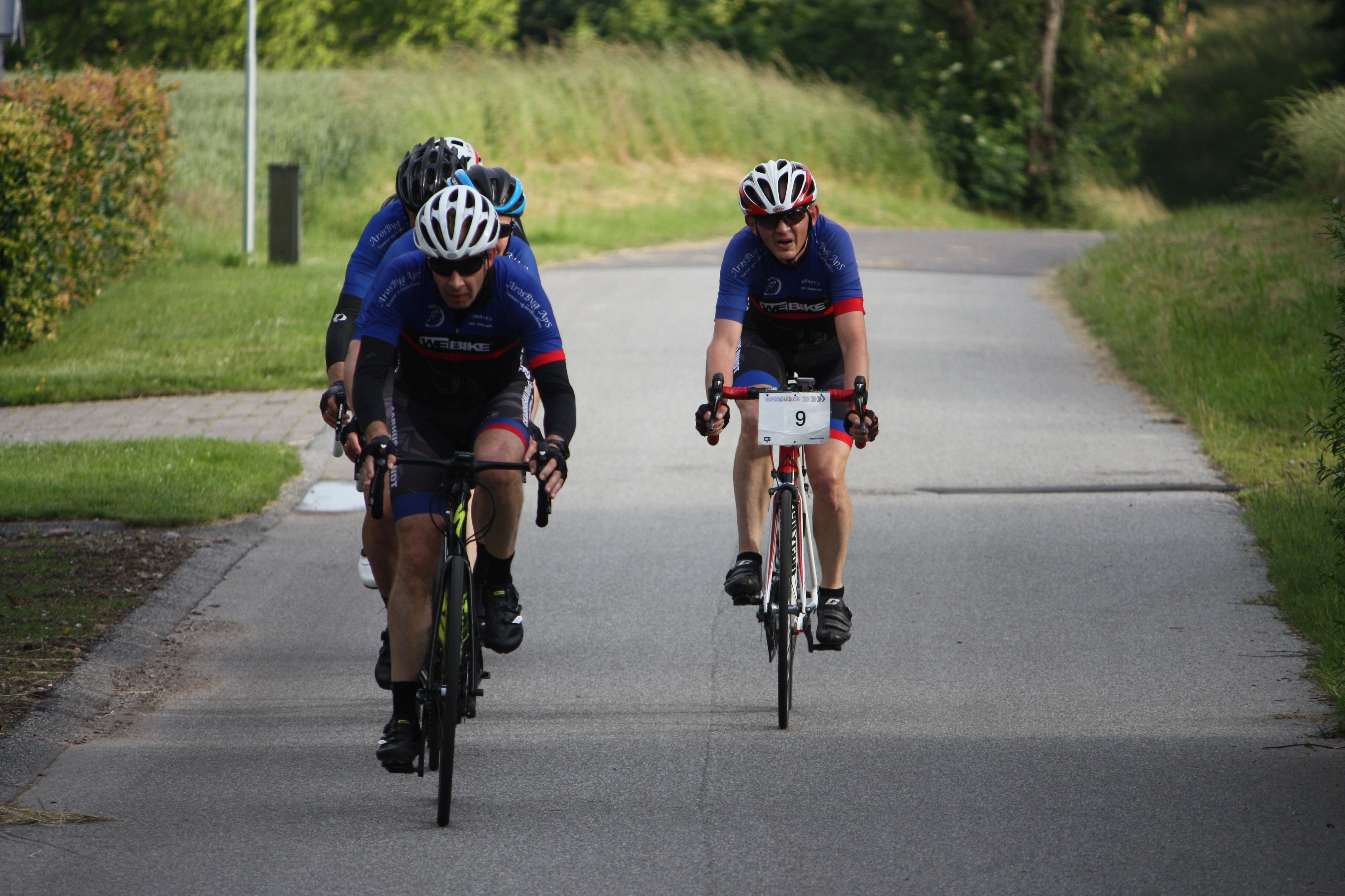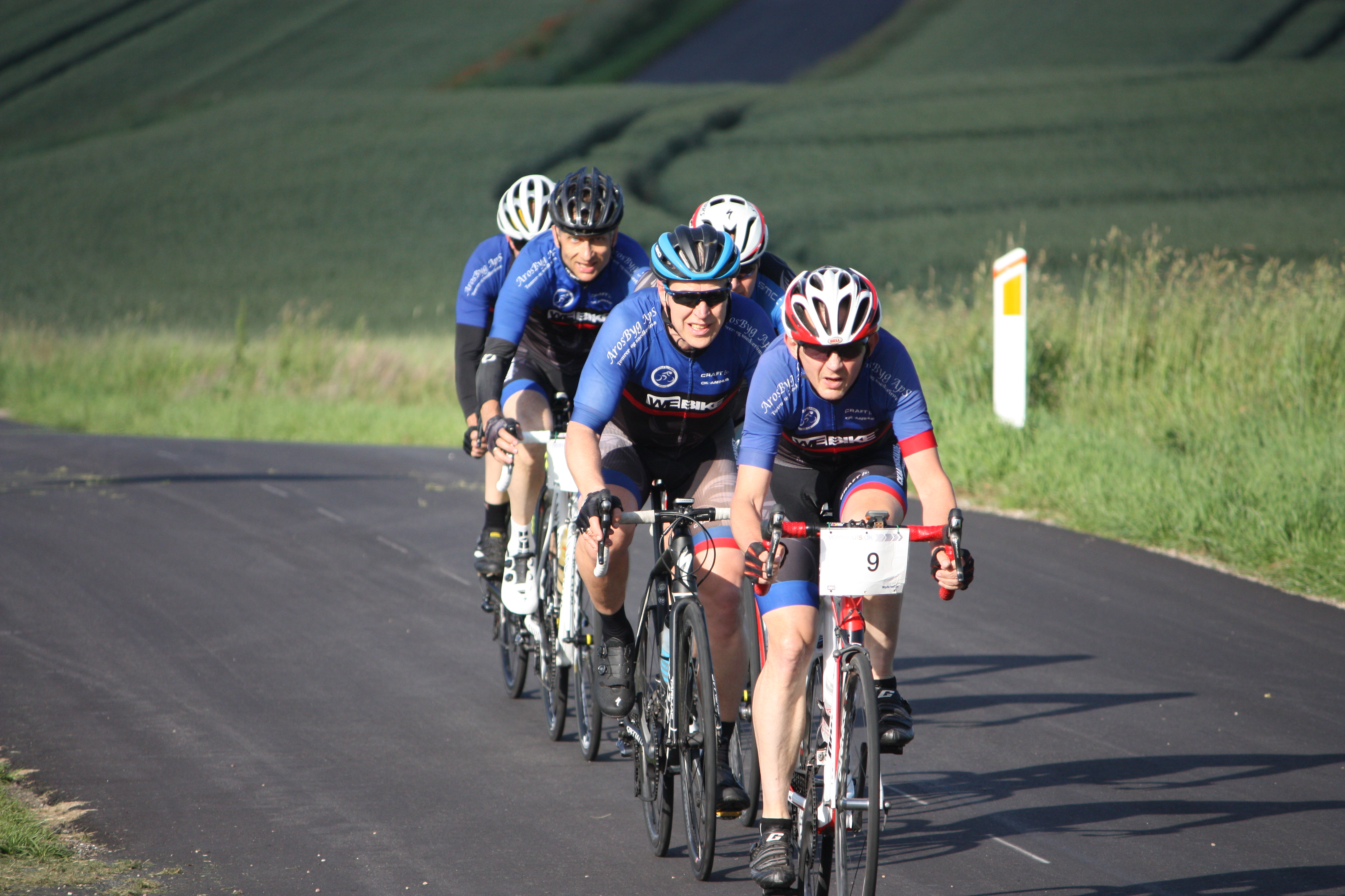 In one of the local Team Time Trial events 2019 (Hovedgaard), with me in back at the start, leading the peloton into the wind, and leaving the front.