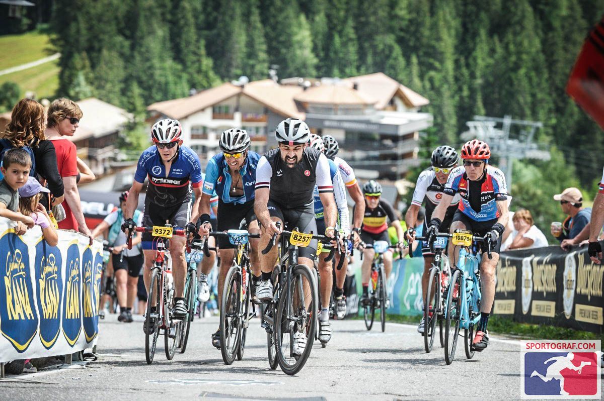 Maratona dles Dolomites, July 2019 (138 km, 4300 hm): The last climb, the last downhill, the nasty 19% hill just before the finish, and crossing the finish line after 6 hrs 45 min.
